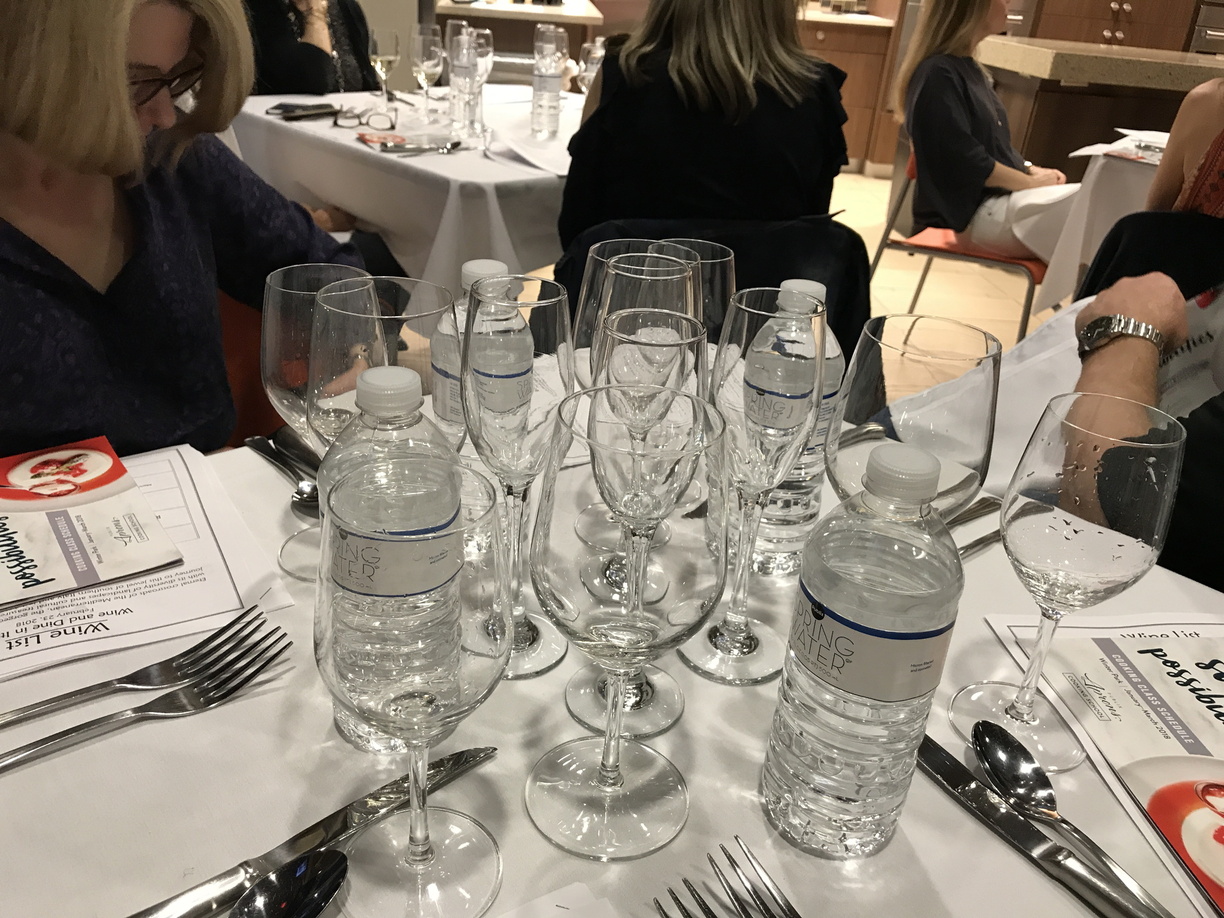 When everyone first sat at their table, they were given their first glass of wine. As each course was served a different wine was poured.
